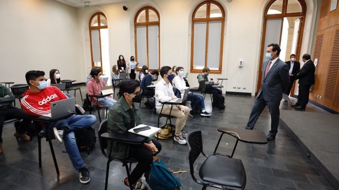 En el marco de su visita a la Casa Central de la Universidad Católica de Chile, esta mañana el subsecretario de Educación Superior, Juan Eduardo Vargas, informó que debido a que el 93% de los estudiantes de la educación superior ya tienen su esquema completo de vacunación, casi la totalidad de las instituciones (99%) del país está en condiciones de retomar sus actividades presenciales.