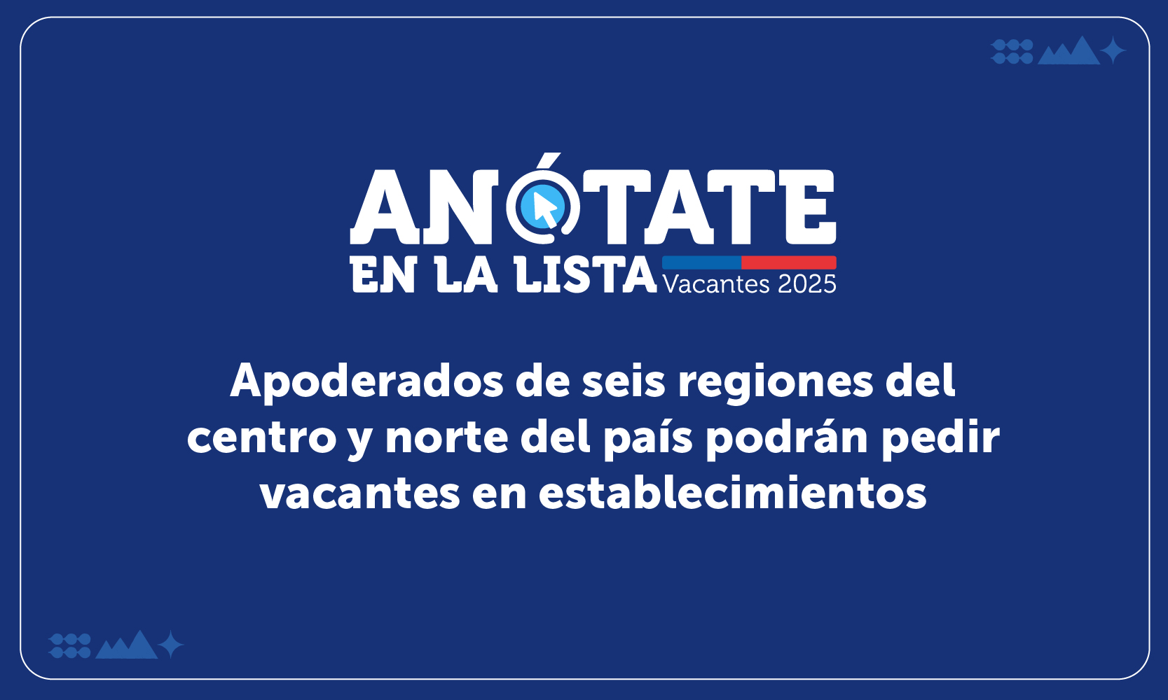 Este miércoles 18 de diciembre comienza a funcionar en la zona norte del país “Anótate en la Lista”, la plataforma que permite a las familias que no participaron del Sistema de Admisión Escolar (SAE) o que aún no cuentan con un cupo para el año escolar 2025 pedir uno en los establecimientos de su preferencia y que aun cuenten con vacantes para asignar.