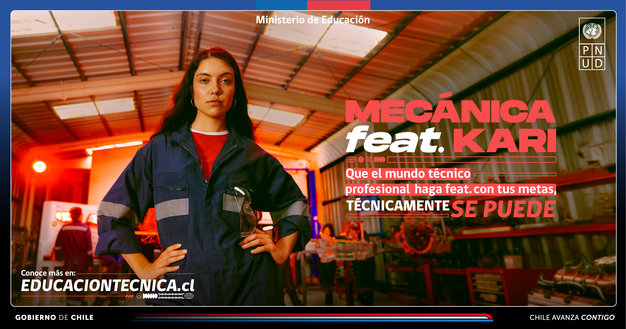 “Cuando Kari hace un feat. con la Mecánica, está haciendo un feat. con el desarrollo sostenible del país. Cuando Dani hace un feat. con la Electricidad, construye un futuro para todas y todos”, son parte de los mensajes que trae la nueva campaña del Ministerio de Educación, “TusMetasFeatTP: que el mundo Técnico Profesional haga feat. con tus metas, Técnicamente se Puede”, para destacar la importancia de la educación Técnico Profesional (TP), en el desarrollo humano sostenible del país y posicionarla como una opción concreta en donde jóvenes y adultos pueden desarrollar sus capacidades y proyectos de vida.
