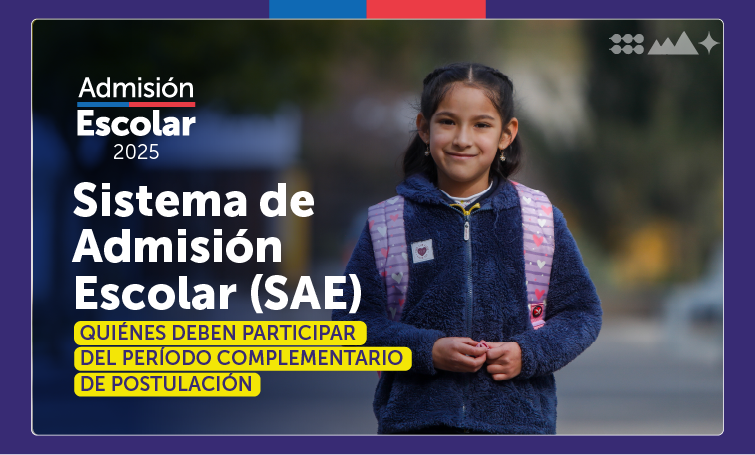 El Ministerio de Educación informa que este viernes 15 de noviembre comenzó el Período Complementario de postulación al Sistema de Admisión Escolar (SAE), el que se extenderá por una semana hasta el viernes 22 de noviembre, a las 14:00 horas.
